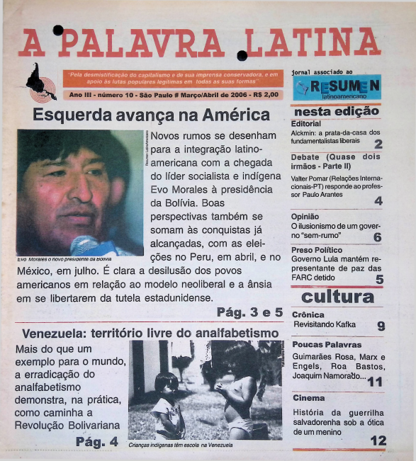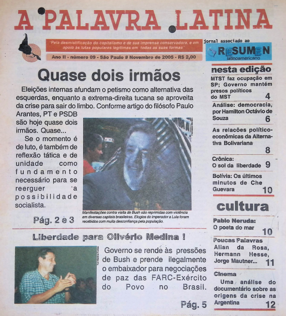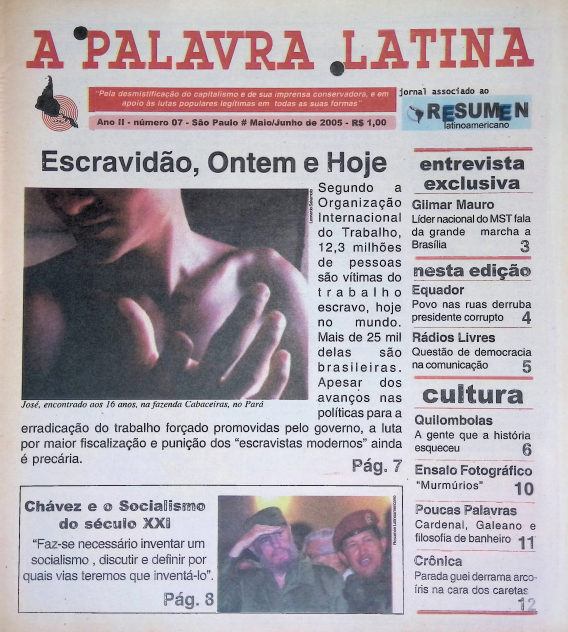 06 Ponto de Vista É TEMPO DE MUDANÇAAs eleições são uma oportunidade de retomar o projeto de desenvolvimento independente do Brasil. É preciso mobilização popular, no entanto 09 A VELHA LUTA DE CLASSESA proposta de reduzir a jornada de trabalho que tramita no Congresso, apoiada pelas centrais de trabalhadores, enfrenta a resistência dos patrões [Gabriela Guedes] 14 PRECONCEITO CONTRA O DIFERENTEPunir quem discrimina homossexuais é saudável e democrático. Mas, no Senado, conservadores emperram a tramitação de projeto com esse objetivo [Lia Imanishi] 16 AINDA SEM RUMOCom 25 anos de Nova República, o País ainda não reencontrou o caminho do desenvolvimento nacional independente [Marcos Montenegro e Raimundo Rodrigues Pereira] 22 UM PLANO PARA CONECTAR O BRASILA universalização do acesso à internet em alta velocidade ainda não existe no Brasil. O governo quer chegar lá com o Plano Nacional de Banda Larga [Rafael Hernandes] 26 COMEMORAÇÃO E LUTANos 200 anos da independência dos países latino-americanos, passado e presente se mistura em confrontos diplomáticos [Flávio Dieguez] 34 REVOLUÇÃO OU CONSPIRAÇÃOO que a América do Sul tem a ver com as “revoluções de veludo” ocorridas no Leste Europeu nas últimas décadas? [Antonio Martins] 36 A Força do desastre socialA atuação da comunidade internacional no Haiti têm sido um fracasso e só faz prolongar a longa crise econômica e social do país [Yuri Martins Fontes] 40 A retomada atômicaA energia nuclear não faz sentido técnico no Brasil. Nos EUA, no entanto, Obama encerrou mais de 30 anos de moratória na construção de usinas atômicas [Flávio de Carvalho Serpa] 44 Humberto Teixeira sai da garrafaEm cinebiografia produzida pela filha, Denise Dummont, o Doutor do Baião e maior parceiro de Luiz Gonzaga recebe o merecido reconhecimento [Gabriel Vituri] 46 Pegadas da poesia no asfaltoReinventando a si próprio e à cidade, Marcus Vinicius Faustini estreia com o livro Guia afetivo da periferia, refazendo suas andanças no subúrbio carioca [Leandro Saraiva] 48 Quero recriar o cotidiano, mobilizar e ser popAlém de escritor, Faustini é diretor de teatro, de cinema e secretário de Cultura de Nova Iguaçu (RJ). Um cara múltiplo, como você confere nessa entrevista [Leandro Saraiva]